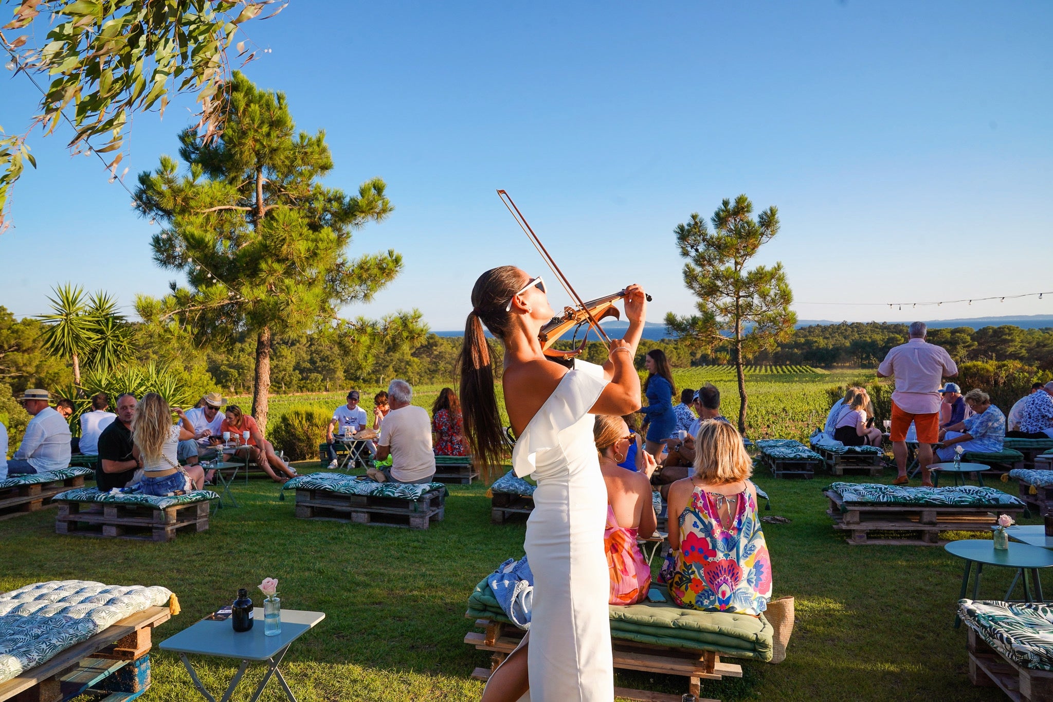 Vivez la magie de nos soirées musicales face à la mer et à l’île de Porquerolles. Dégustez nos cuvées au coucher du soleil, bercés par le rythme de la musique live. Un moment d’exception suspendu dans le temps.