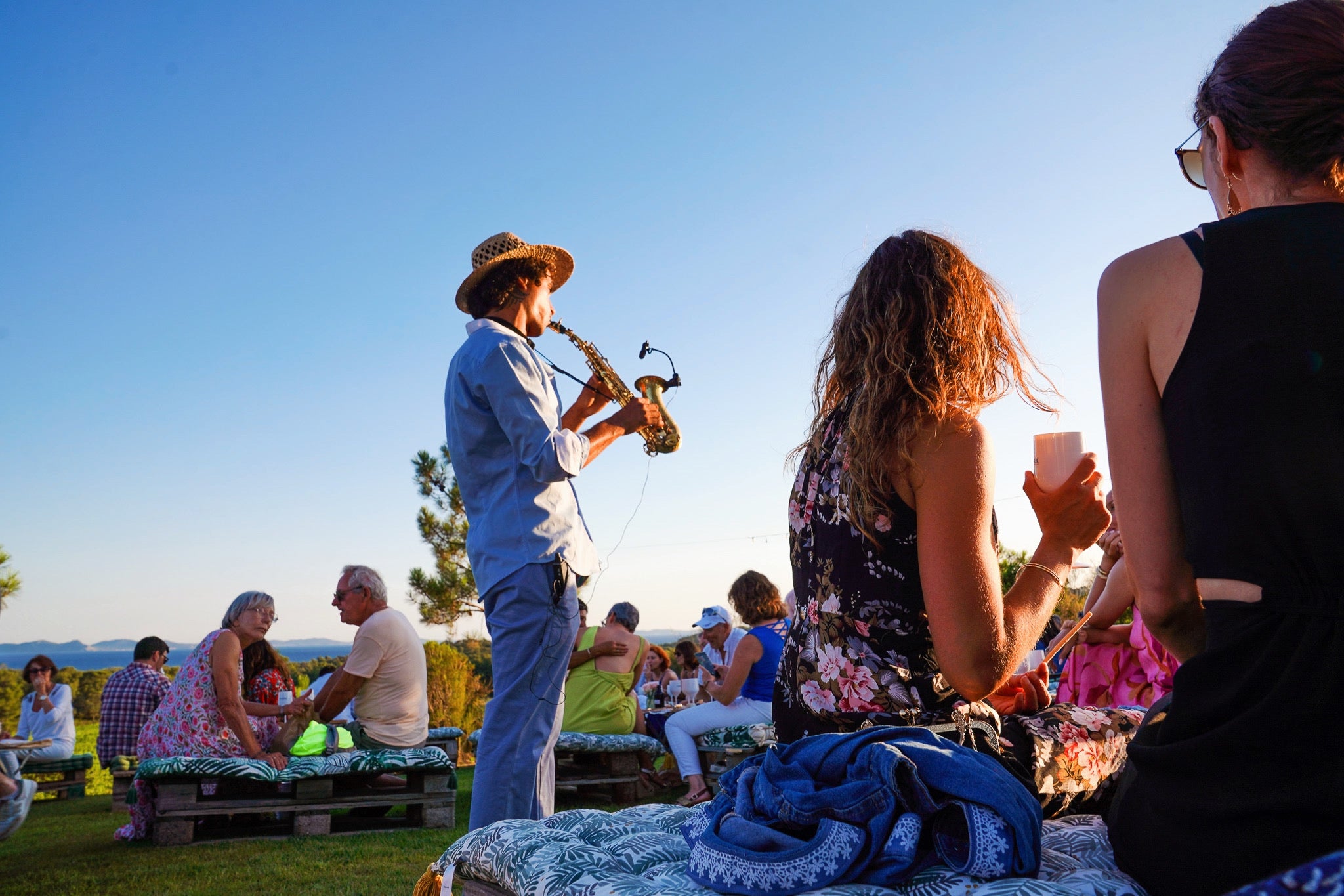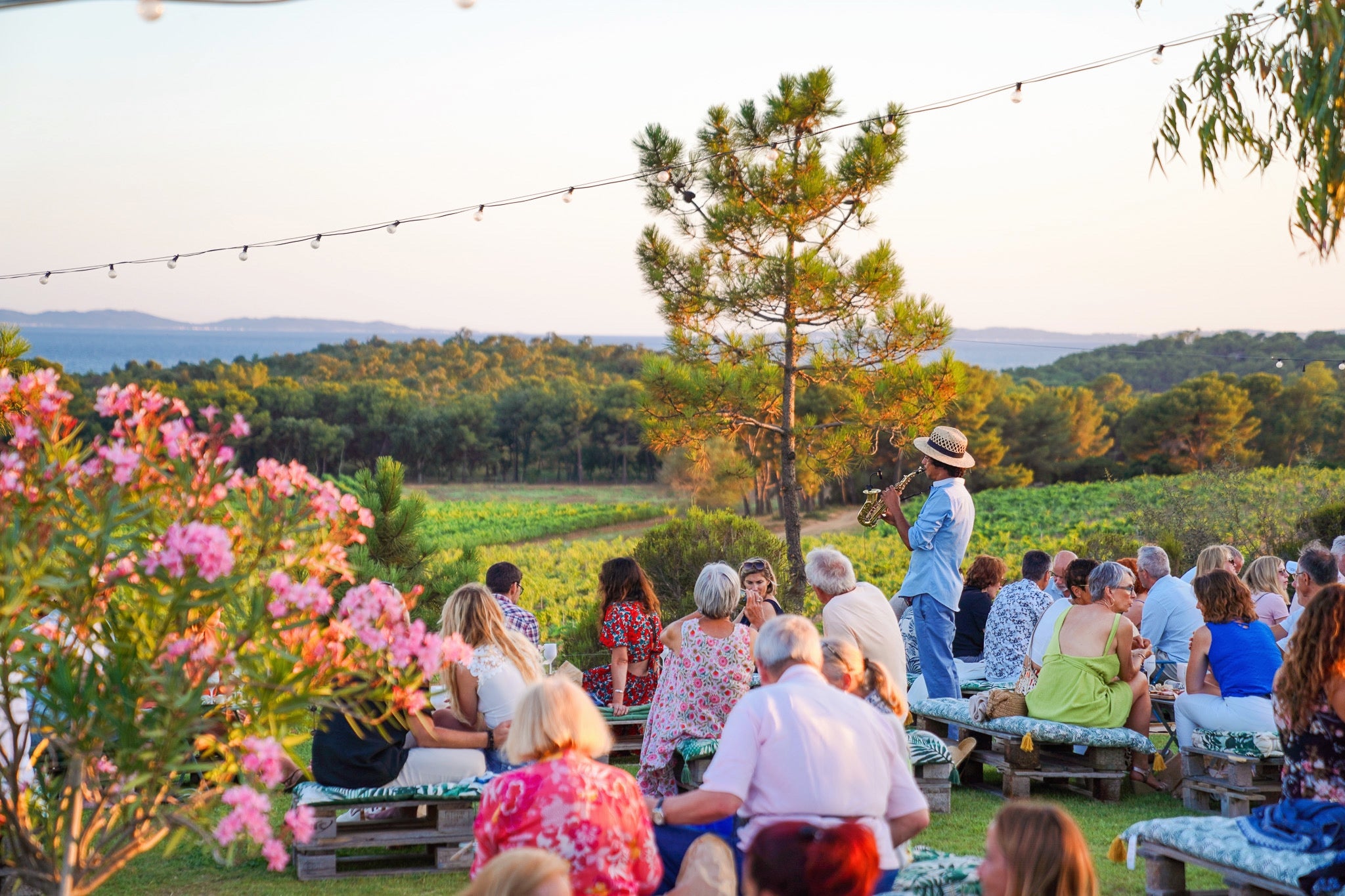 Chaque mercredi soir d’été, rejoignez-nous pour une soirée inoubliable mêlant musique live, vins du domaine et coucher de soleil sur la Méditerranée et sur l'Île de Porquerolles.
